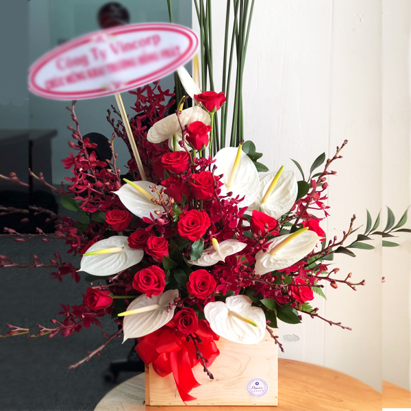 Hồng môn trắng tượng trưng cho một khởi đầu đầy tinh khôi và may mắn, kết hợp cùng sắc đỏ của hoa hồng tượng trưng cho niềm tin vào chiến thắng. Lẵng hoa thích hợp tặng trong các dịp sinh nhật, kỉ niệm hay chúc mừng cho đối tác hay doanh nghiệp bạn quan tâm đến. Hãy cùng gửi đến họ lẵng hoa chúc mừng khai trương tươi đẹp cùng một lời chúc thành công thật chân thành và ý nghĩa nhé.